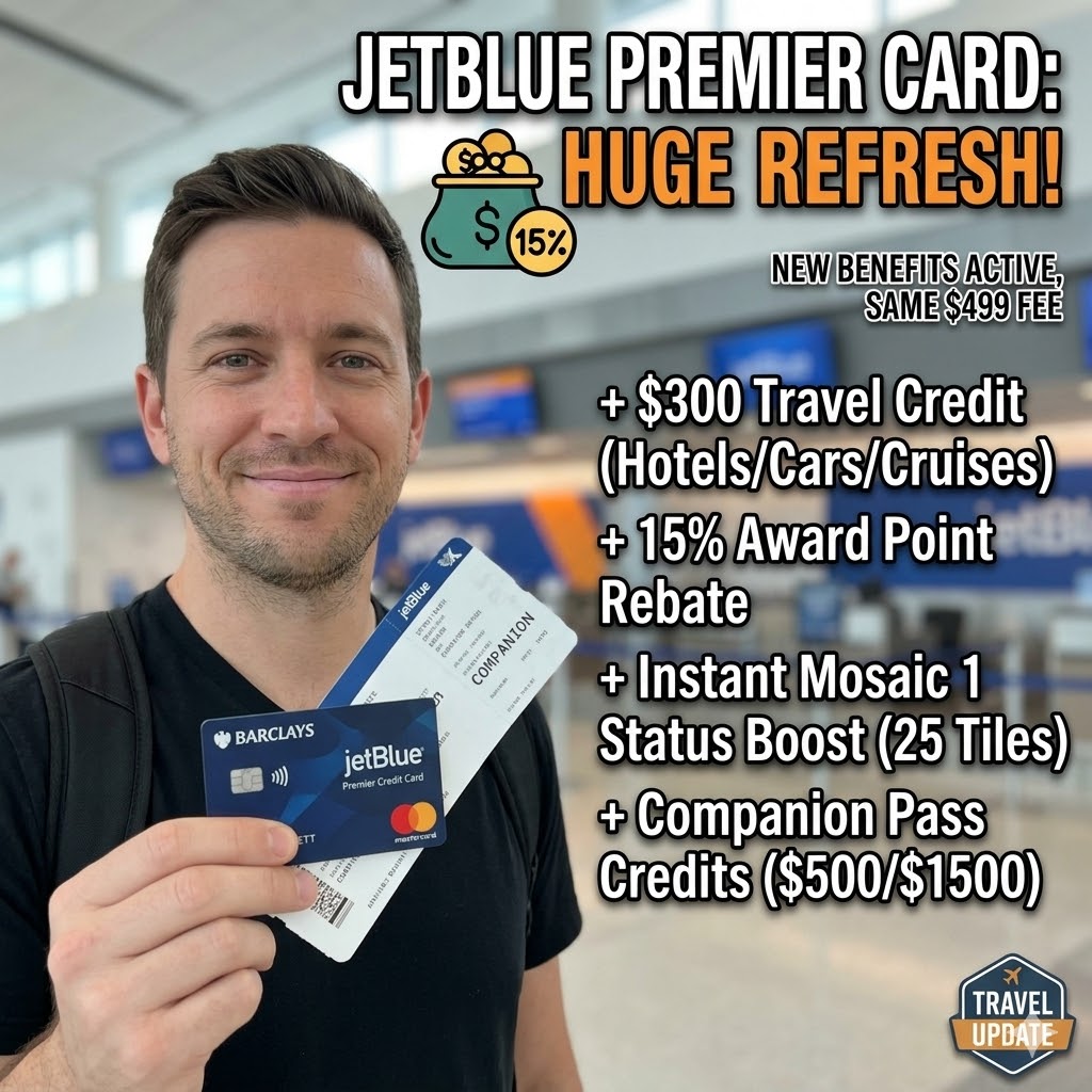 If you hold the Barclays JetBlue Premier Credit Card, your wallet just got a serious upgrade. š JetBlue has completely overhauled the card's benefit stack, adding massive value without touching the annual fee.