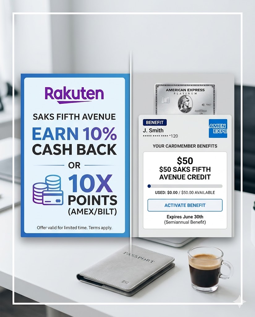 #awardtrail #amexplatinum #rakuten #travelhacking #pointsandmiles #saksfifthavenue #membershiprewards #smartspending #travelhacker